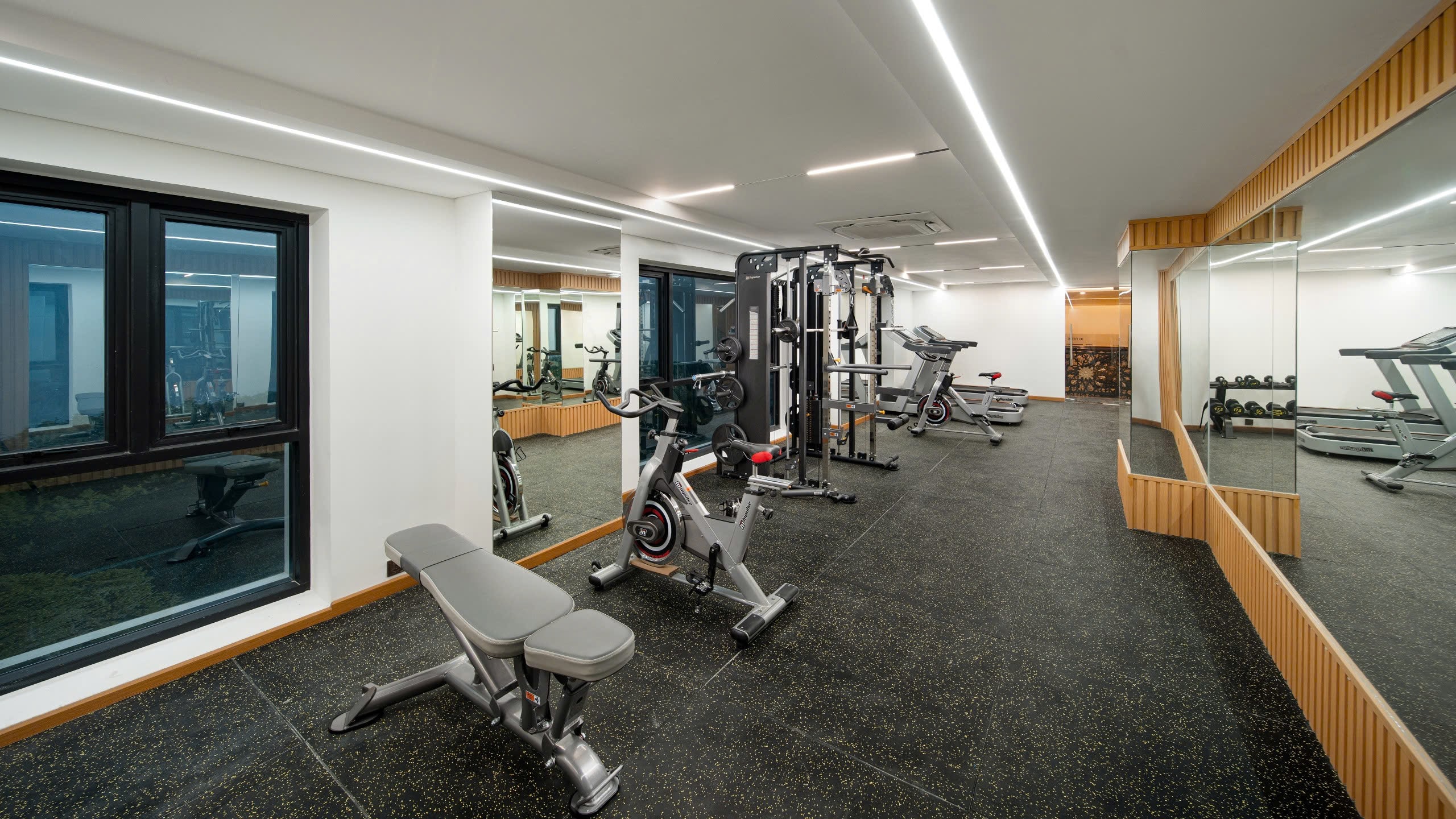 Phòng GYM tại Anyla Grand Hotels được thiết kế như một không gian rèn luyện sức khỏe đẳng cấp quốc tế, nơi hội tụ giữa công nghệ hiện đại và phong cách sống năng động. Trang bị hệ thống máy tập cao cấp nhập khẩu từ các thương hiệu hàng đầu thế giới, phòng GYM đáp ứng đầy đủ nhu cầu luyện tập từ cardio, thể lực đến tập chuyên sâu.